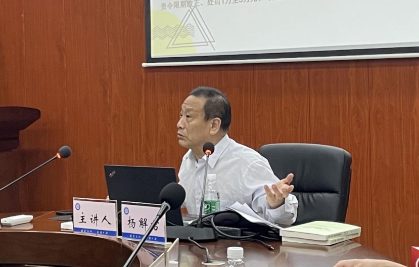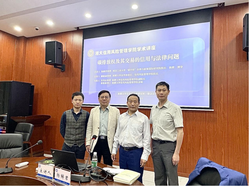 2023年5月6日上午9点,我院于法学楼东附一楼会议室举办韶风名家论坛,南京工业大学杨解君教授应邀作为主讲人,为我院师生开展了“碳排放权及其交易的信用与法律问题”主题讲座。本次讲座由我院学部部长、信用风险管理学院院长顾敏康教授主持,与谈人有信用风险管理学院副院长肖伟志教授、蒋都都老师。