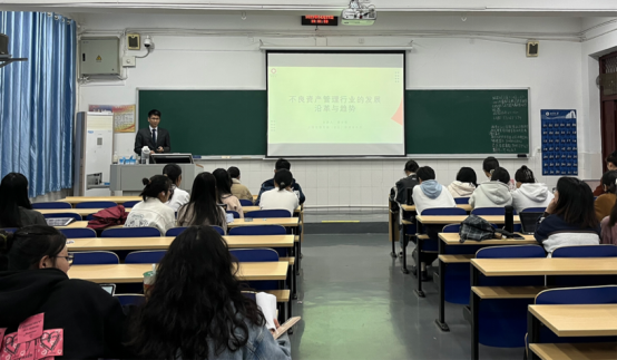 本次授课雷律师以律师身份出发,从实务角度,对涉及不良资产管理行业的法律要点进行诠释。雷律师首先以不良贷款为切入点,通过辨析其与不良资产的区别,引导同学们积极思考不良资产的概念。在明晰不良资产的定义和分类后,雷律师从三个部分展开授课,分别是金融不良资产管理行业的发展原则,当前金融不良资产管理行业的市场情况和金融不良资产管理行业的发展趋势,层层递进,由浅及深。他认为,目前不良资产处置所涉及的法律知识主要包括民事法律和行政法律,在金融业更多的是监管政策,即部门规章层级的法律规范,总体上实践性更强。