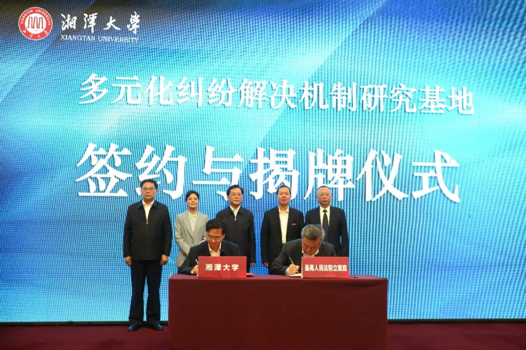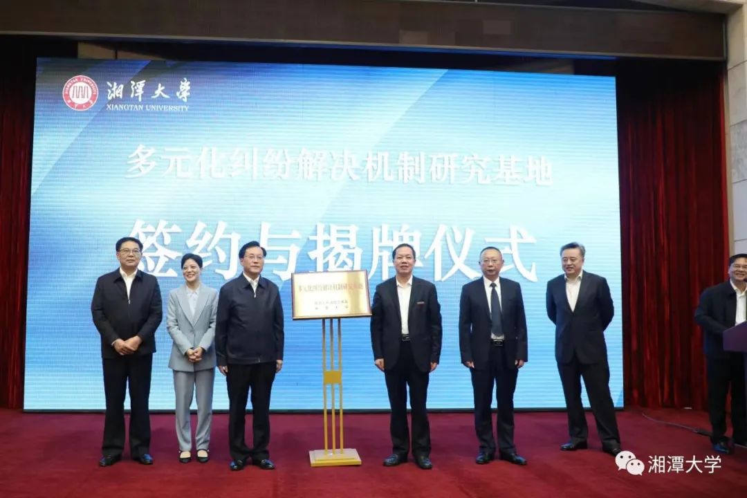 最高人民法院党组成员、副院长高憬宏,最高人民法院立案庭庭长钱晓晨,yl23455永利官网党委书记刘起军,湖南省高级人民法院党组成员、副院长董岚,湘潭市委常委、政法委书记向敏,湘潭市中级人民法院党组书记、院长罗重海,yl23455永利官网党委副书记廖永安等共同为“多元化纠纷解决机制研究基地”揭牌。
