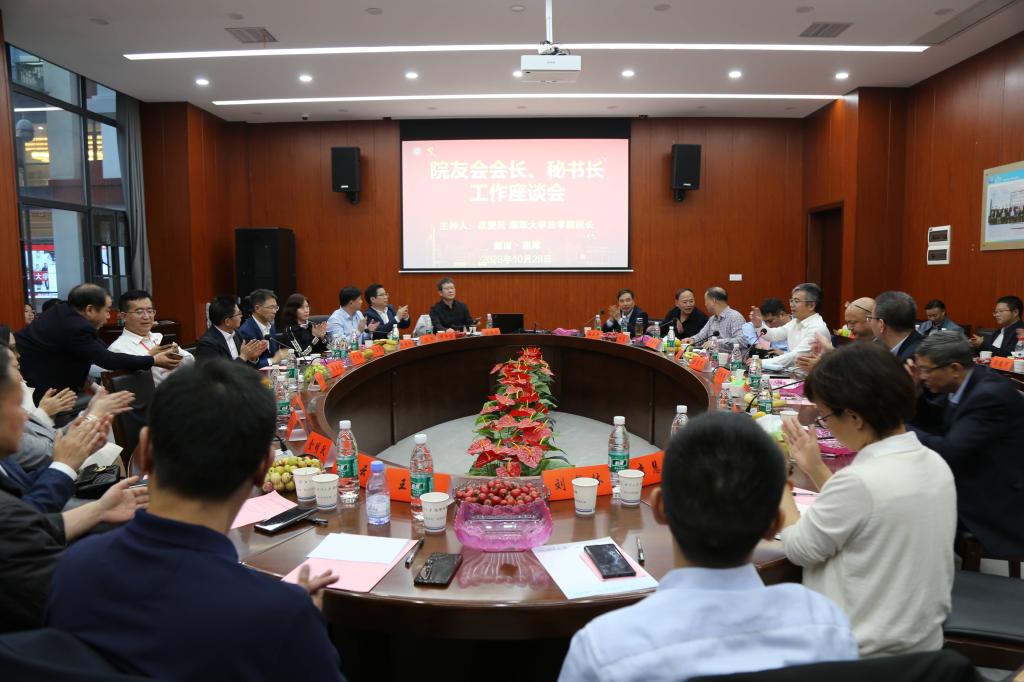 10月28日下午,我院学部第一次院友会会长、秘书长工作会议在法学楼东附一楼会议室举行。湘潭大学党委委员、副校长肖志伟教授,湘潭大学校友会办公室、教育基金会办公室主任杨建军,yl23455永利官网院长欧爱民教授、yl23455永利官网党委书记陈双喜,以及来自全国各地22个院友会的会长、秘书长和部分教师代表参加了会议,共同纪念湘潭大学学院学科创建四十周年,并就如何做好院友工作、yl23455永利官网学学科发展建言献策。