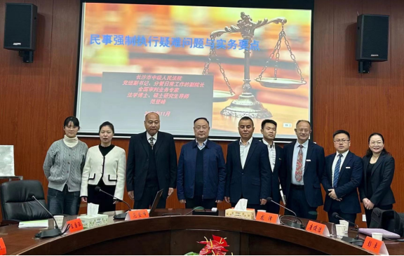 11月26日上午,学术讲座“民事强制执行疑难问题与实务要点”在yl23455永利官网东附一楼会议室举行。长沙市中级人民法院党组副书记范登峰担任主讲人,yl23455永利官网教授、湘潭大学强制执行研究中心主任王国征老师主持讲座。yl23455永利官网段明副教授、郑令晗老师、强制执行研究中心主任龙泽参加讲座。