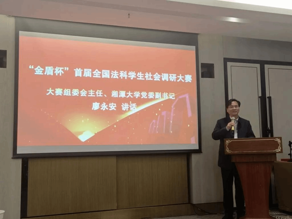 最后,大赛组委会主任、湘潭大学党委副书记廖永安教授讲话。廖永安教授指出,通过此次大赛,全国法学学子大兴调查研究之风,并在社会调研过程中,形成和培养了问题意识,锻造了科研能力。湘潭大学将继续创新学院学科竞赛模式、突破传统赛事人才培养短板,为关注法治发展的大学生提供相互交流、共同进步的平台。