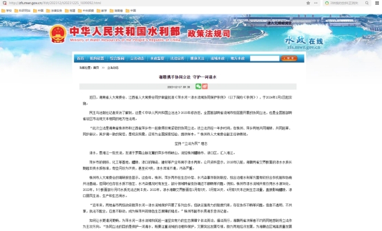 根据株洲市人民代表大会常务委员会第8号公告,李云霖立法团队参与、服务的《株洲市萍水河—渌水流域协同保护条例》即将于2024年1月1日起施行。这是《中华人民共和国立法法》2023年修改之后,全国首部跨省流域市级层面开展的协同立法,也是全国首部跨省设区市法规文本相同的地方性法规,还是全国首部以上下游组合名称命名的流域协同立法。