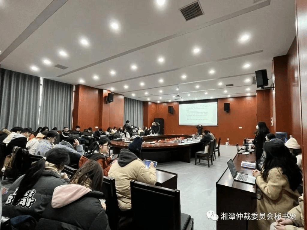“湘潭仲裁委员会受理的罗某某与赵某、彭某某租赁合同纠纷一案,今天开庭……”2023年12月20日上午9点,仲裁员宣布开庭的声音在yl23455永利官网一间会议室内响起。原来,这是一场仲裁案件的公开庭审现场,会议室内除了仲裁庭成员和双方当事人外,还围坐了几十名yl23455永利官网的在读研究生。