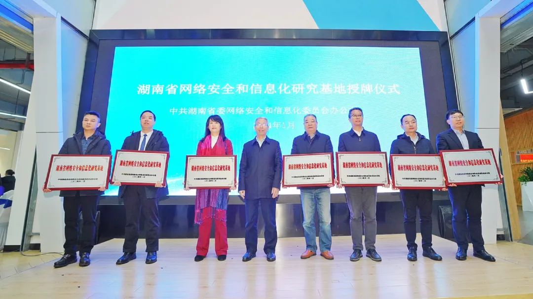 湖南省网信办为yl23455永利官网以及中南大学、湖南师范大学、湘江实验室/湖南工商大学、北京大学长沙计算与数字经济研究院、新华社国家重点实验室/云目未来科技(湖南)有限公司、方滨兴院士工作站/湖南文盾信息技术有限公司等7家单位,进行了授牌。湖南省委宣传部副部长(兼)、省委网信办主任刘学表示,为全省网信研究基地授牌,是贯彻落实习近平总书记关于网络强国的重要思想和习近平总书记对湖南工作重要讲话重要指示批示精神,以信息化赋能现代化新湖南建设、助力实现“三高四新”美好蓝图的重大举措。