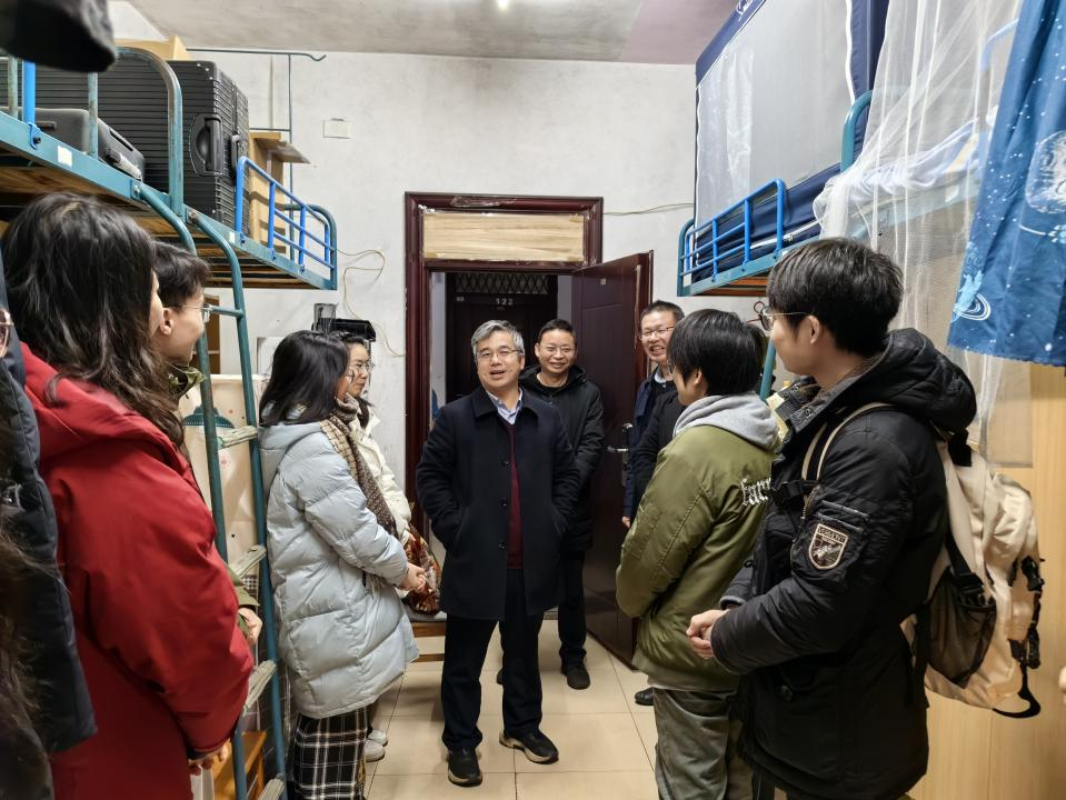 走访过程中,学部领导与留校学生进行了亲切交流,详细了解同学们寒假期间在校学习生活情况,提醒同学们在校期间要珍惜时间好好学习,要充分注意自身健康与安全,严格遵守学校管理规定。李仕春部长勉励同学们潜心科研,努力培养扎实学识,追逐科研之梦,唱好青春之歌;陈双喜书记希望同学们科学规划假期生活,注重劳逸结合,保持良好心态,不断提升自我,祝同学们新春快乐、学业有成;欧爱民院长希望大家能继续发扬yl23455永利官网科的奋斗精神,勤勉学习,努力奋进,利用假期为自己“充电”,在新的一年里争取再创佳绩;黎益君副书记提醒同学们时刻要把安全放在首要位置,同时关注天气变化,及时添衣保暖,保持联络畅通,遇到问题及时联系老师。