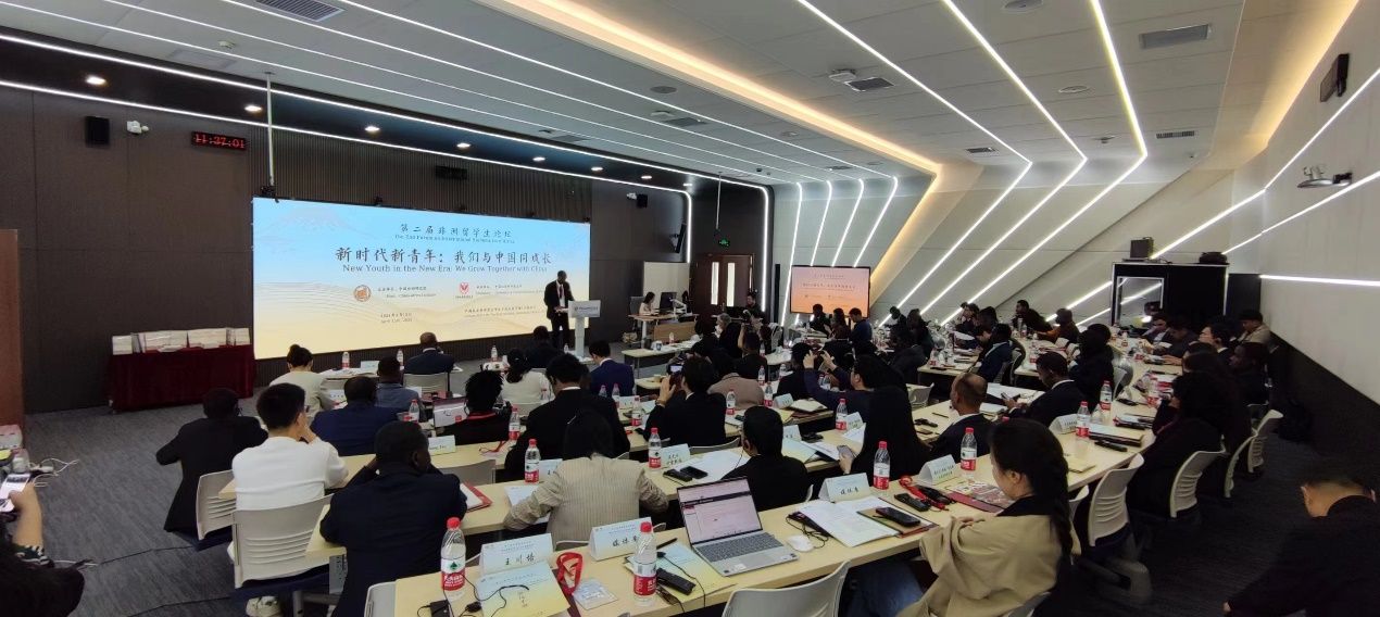 本次论坛期间,还召开了新书《非洲留学生眼中的新时代中国》(中英文版)发布会。据主要编者介绍,2021年中国非洲研究院面向在华非洲留学生发起了“这十年,我们与中国同成”主题征文活动,得到了积极响应。中国非洲研究院从投稿中遴选出30余篇优秀作品,在社会科学文献出版社结集出版。我院学部有4位非洲师生的作品入选,分别是专任教师卡斯的《非洲对“一带一路”的态度:以肯尼亚为例》、博士生天佑的《“一带一路”在非洲》,博士生科比(Joseph Amoah,加纳)的《加强中非公共卫生合作提升非洲公共卫生能力》、硕士生Ondo Nzang(赤道几内亚)的《习近平新时代中国特色社会主义思想及其影响:以赤道几内亚为例》。该书以非洲留学生的独特视角,记录了新时代中国在各方面取得的巨大成就,抒发了非洲留学生对中国文化的热爱和对中国发展的感慨,反映了中非之间互学互鉴、相互促进、共同发展的历程。
