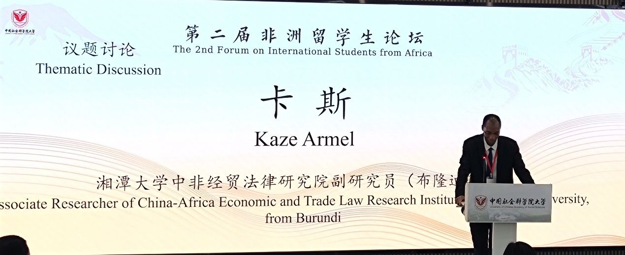 2024年4月15日,由中国非洲研究院主办、中国社会科学院大学承办的“第二届非洲留学生论坛”在中国社会科学院大学(良乡校区)举办。本次论坛以“新时代新青年:我们与中国同成长”为主题。来自16个非洲国家,就读于中国高校的三十余位非洲留学生代表,以及中国高校院所的专家学者等近百人参会,共话新时代中非青年的使命担当。中非经贸法律研究院副院长、我院学部副教授张小虎,中非经贸法律研究院副研究员卡斯(Kaze Armel,布隆迪),我院学部国际法专业博士生天佑(KakuruDassy,乌干达),中非经贸法律研究院研究人员郭炯等应邀参会。