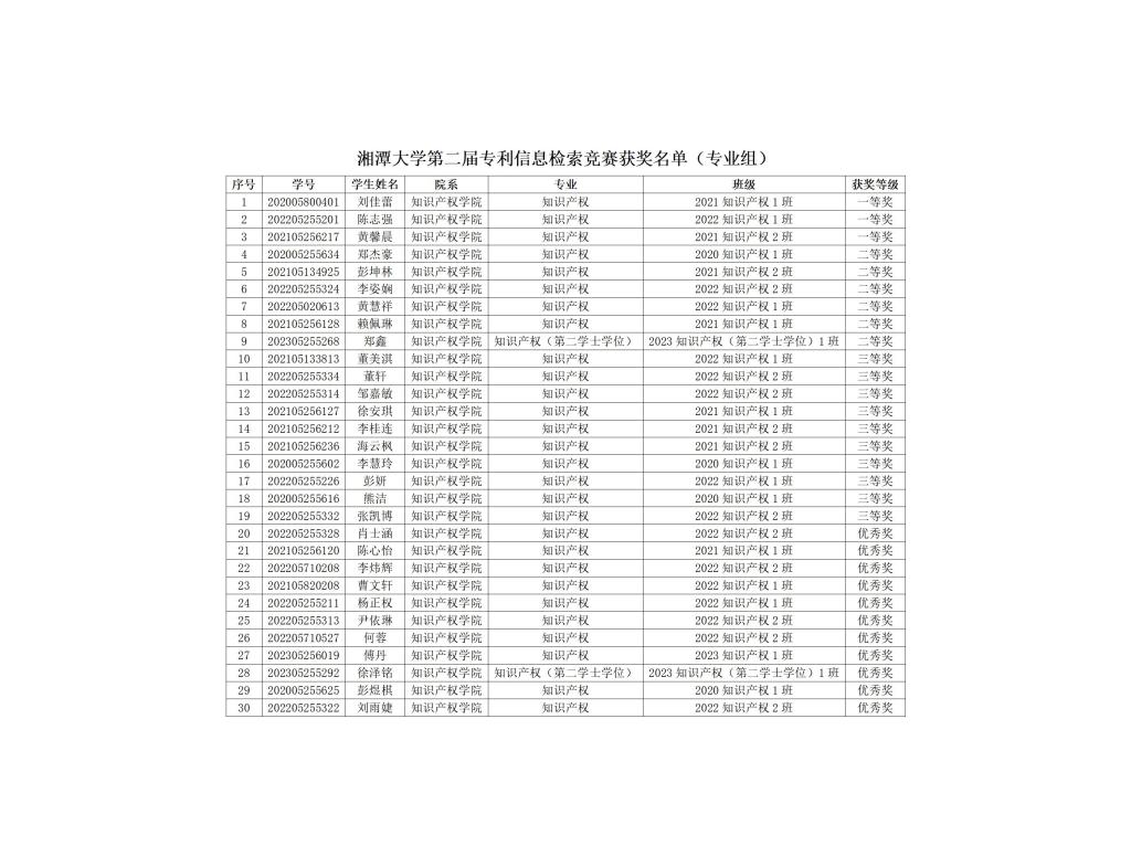 最终,来自知识产权学院的刘佳蕾等30名同学获得本次竞赛专业组的一、二、三等奖和优秀奖,来自商学院的堵胜奇等30名同学获得本次竞赛非专业组的一、二、三等奖和优秀奖。