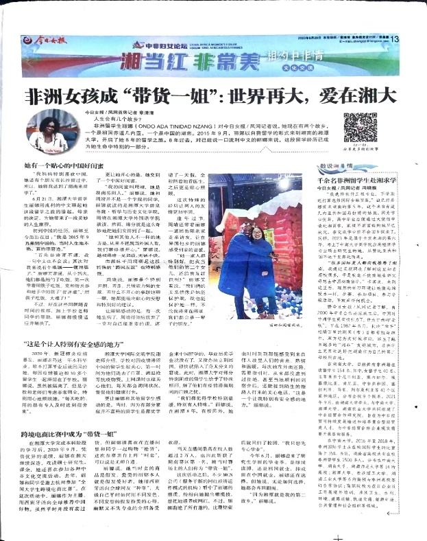 第二,将非洲来华留学群体较大的整体性特点转化为非洲留学生培养的特色化道路,充分挖掘非洲留学生真诚、活泼、好学的潜质,培养了一批非洲留学生模范典型。如赤道几内亚硕士生丽娜曾荣获第十二届全国大学生电子商务挑战赛一等奖,被《今日女报》整版专访报道。连续两年培养出优秀法学硕士生,先后被厦门大学、浙江大学等国内知名高校录取为博士研究生。因在非洲留学生培养方面形成的鲜明特色和突出优势,还在2021年成功申报获批了“中非友谊”中国政府奖学金项目,开展中非经贸法律紧缺人才培养项目。