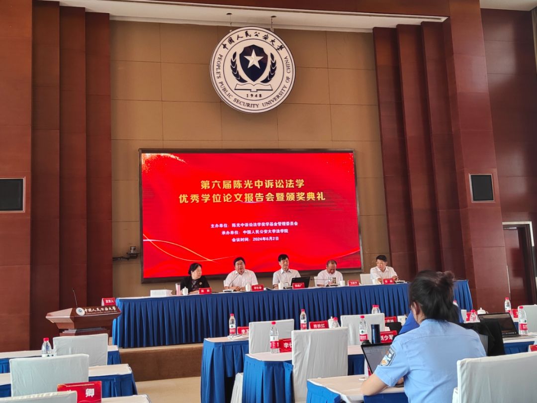 2024年6月2日,第六届陈光中诉讼法学优秀学位论文报告会暨颁奖典礼在中国人民公安大学木樨地校区隆重举行。本次活动由陈光中诉讼法学奖学基金管理委员会主办、中国人民公安大学承办,来自全国各地高校的38名与会专家和54名与会获奖者参与了本次会议。出席颁奖典礼的嘉宾有:中国政法大学原校长、终身教授陈光中先生,管理委员会主任、中国政法大学诉讼法学研究院卞建林教授,中国人民公安大学校长曹诗权教授,中国人民公安大学副校长罗亚平教授,四川大学yl23455永利官网院长左卫民教授,中南财经政法大学姚莉教授,中国政法大学诉讼法学研究院院长熊秋红教授、中国政法大学教务处处长汪海燕教授,浙江大学yl23455永利官网院长胡铭教授,中国人民公安大学yl23455永利官网院长李玉华教授,海南大学yl23455永利官网院长王琦教授等。我院学部部长李仕春教授受湖南警察学院院长廖永安教授的委托参加会议,表达了对陈光中教授的崇高敬意和对获奖同学的热烈祝贺,并作为点评专家对现场发言人的论文进行点评。