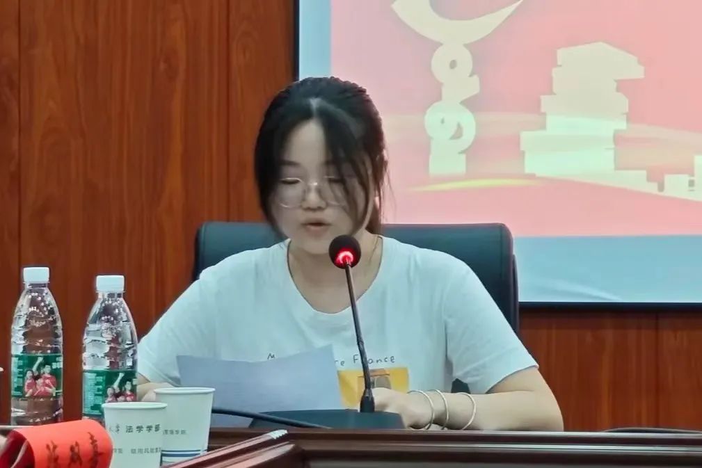 第一个发言的是刑事诉讼法毕业生代表黄清扬同学。黄清扬同学表示很荣幸能够作为刑事诉讼法方向的毕业生代言在此发言,借此机会向大家表达内心的感恩与期待。首先,黄清扬同学表达了自己对过去的感谢,对过去的感谢中包括了对通程律师事务所的感谢和导师李蓉教授的感谢;其次,黄清扬同学表达了自己对未来的期待。她表示在未来的学习和工作中,会时刻铭记“养浩然正气,铸法治精魂”这一院训,用它作为行为准则,做一个对社会有益、对法治建设有贡献的人;最后,黄清扬同学衷心祝愿各位老师们工作顺利、事事顺心,愿老师们的智慧和辛勤付出能够继续照亮同学们前行的道路。同时,也祝愿各位同学们在各自的领域里熠熠生辉、成就非凡,实现自己的人生价值和梦想。