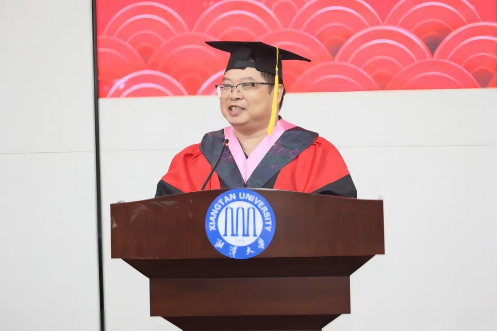 明天,大家即将奔赴祖国各地,去往你们梦想的地方。我希望,不管你们走到何处,山高水长,我们都应当深深地牢记:湘潭大学永远是我们的精神家园,是我们灵魂中的故乡。希望大家以后常回家看看,看看美丽可爱的小师妹和帅气萌萌的小师弟,也回来严肃地指导指导老师们的工作,回来看看老师们是否还一直在努力,是否还在永雄楼“通宵达旦地工作”。