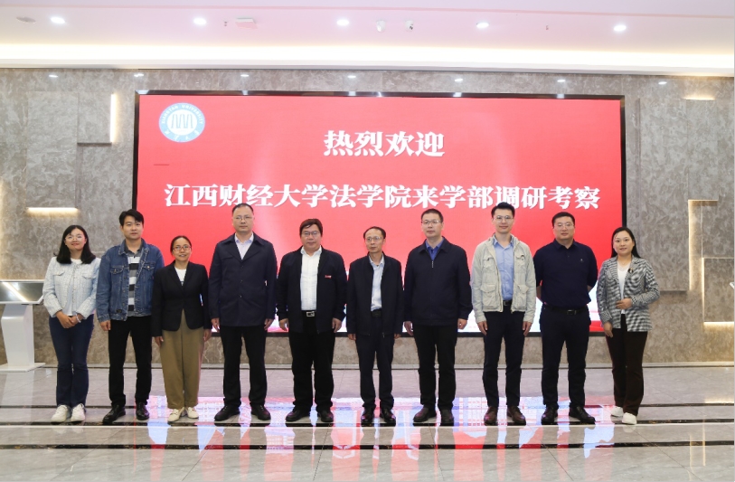 10月16日下午,江西财经大学yl23455永利官网院长易有禄教授、副院长谢红星教授、副院长李翃楠副教授、宪法与行政法系系主任方颉琳老师、办公室主任肖海琦一行莅临我部,调研人才培养、科学研究和学科建设等工作。我院学部部长李仕春教授、党委书记陈双喜、副部长李喜莲教授、副部长连光阳副教授、国内合作办公室主任邹琳副教授参与调研座谈。调研座谈会由陈双喜书记主持。