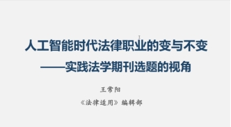 国家法官学院《法律适用》编辑王常阳从实践法学期刊选题的视角,分享了对“法律的人工智能”和“人工智能的法律”的观察和观点。在“法律的人工智能方面”,他指出,认为人工智能能够取代法律职业的稿件大量涌现,但是同质化现象比较严重,存在架构相似、引注素材和观点雷同的问题,期待学者展开研究视角和研究方法更为契合的深入论证。在“人工智能的法律”方面,他介绍了近期法官实践中的真问题,包括DeepSeek开源后的演绎作品问题、端侧大模型问题、算力侵权问题、智驾事故责任问题和人工智能模仿明星提供陪伴服务的人格权侵权问题。
