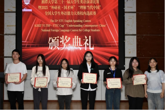 湘潭大学第三十一届大学生英语演讲比赛暨2025“外研社·国才杯”“理解当代中国”全国大学生外语能力大赛校内选拔赛决赛于4月26日落下帷幕。我院学部学子凭借卓越的英语综合素养与出色的演讲表现,在激烈角逐中脱颖而出,斩获多项佳绩。充分展现了学部青年学子的国际视野与专业底蕴,彰显了语言素养与专业能力深度融合的多维育人成效。