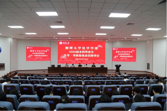 5月26日上午,我院学部2026届本科毕业生法考・考研备战动员指导会在研究生院学术报告厅顺利召开。本次会议通过“专家领航+朋辈引路”的双轨模式,为踏上法考和考研征程的学生们加油鼓劲、指点迷津。我院学部部长李仕春、副部长连光阳、党委副书记黎益君、法考办主任兼AI促进办主任张庆霖、研考办主任夏先华、2026届毕业生班主任、学工办辅导员及本科生700余人参加了会议,会议由黎益君副书记主持。