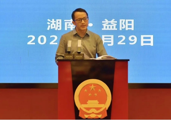 5月29日,益阳市人民检察院举办了第一届益阳市公益诉讼检察业务技能竞赛,益阳市人民检察院党组书记、检察长王东晖,湖南省检察院第八检察部副主任陈菂,益阳市人民检察院党组副书记、副检察长胡细罗等领导同志,以及来自高校、检察机关、实务界评委参加了竞赛活动。肖峰教授应邀担任专家评委,在5月29日上午全程听取了15名选手的案件汇报、现场提问的即时解答情况,下午全程观摩了6强选手的一对一辩论赛。赛后,肖峰教授代表评委,对全天比赛中试题考点、选手表现、未来提高问题,进行了专业地讲解和点评,并为获得“益阳市公益诉讼检察业务技能竞赛能手”称号的同志颁奖。