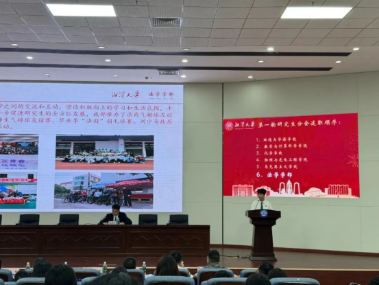 在述职环节中,我院学部第二十七届团总支、研究生会执行主席袁鑫勇以“日常管理、文体活动、学术交流、特色工作” 四大板块为框架,系统回顾过去一年工作。报告重点突出工作特色与活动创新 —— 从学术沙龙的品牌化打造到法治实践活动的深度开展,从文体赛事的多元策划到服务同学的精细化举措,全方位展现了我院学部团总支、研究生会的活力与担当。