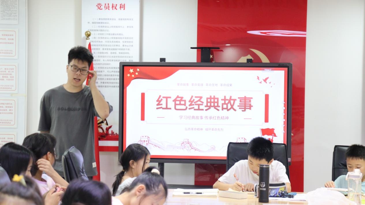 翌日,7月8日的课堂则充满对革命先辈的崇高敬意与深切缅怀。团队以“弘扬革命精神,缅怀革命先烈”为主线,带领孩子们走进烽火连天的革命岁月。从朱德总司令在井冈山时期与战士同甘共苦、“扁担藏情”的故事,到雷锋同志出差一千里、好事做一火车,把有限生命投入到无限为人民服务中去的感人点滴;从潘冬子(电影《闪闪的红星》主角)在白色恐怖下机智勇敢传递情报、火烧恶霸胡汉三的传奇经历,到杨靖宇、赵尚志、向警予等革命先烈为民族独立和人民解放抛头颅、洒热血的壮烈史诗……一个个鲜活的红色经典故事,一位位可歌可泣的革命英雄形象,穿越时空,震撼着在场每一位孩子的心灵。课程不仅讲述故事,更引导孩子们思考革命精神的时代价值,学习革命先烈坚定的理想信念、无私的奉献精神和英勇的斗争意志。孩子们被深深打动,纷纷表示要珍惜当下来之不易的幸福生活,继承先辈遗志,好好学习,天天向上,立志成长为担当民族复兴大任的时代新人。
