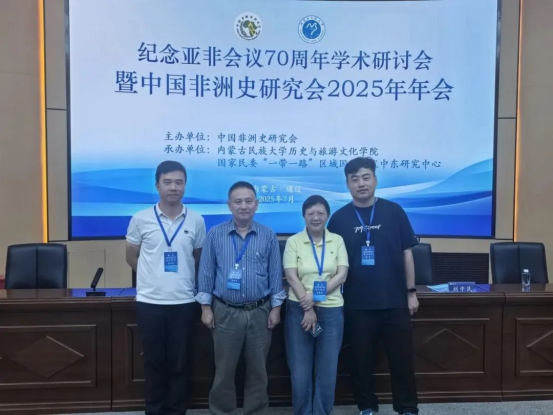 2025年是亚非会议召开70周年,为继承和坚持“团结、友谊、合作”的万隆精神,加强非洲历史与非洲发展研究。7月19日,由中国非洲史研究会主办,内蒙古民族大学历史与旅游文化学院、国家民委“一带一路”区域国别研究中东研究中心联合承办的“纪念亚非会议70周年学术研讨会暨中国非洲史研究会2025年年会”在内蒙古民族大学顺利召开。来自全国60余所高校和研究机构的100余位专家学者及师生代表参加会议。湘潭大学中非研究院首席专家洪永红教授、刘功奇副教授应邀出席上述会议。