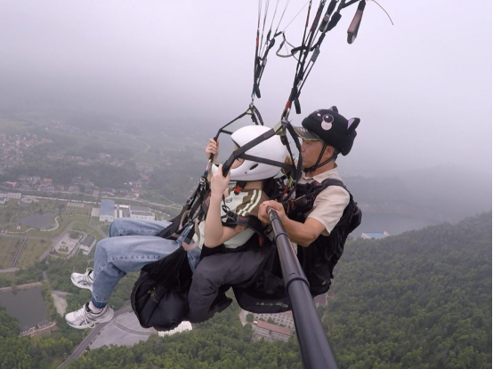 8月16日,实践团成员亲身体验黑麋峰基地双人滑翔伞项目,以参与者视角感知风险与保险的关联性。