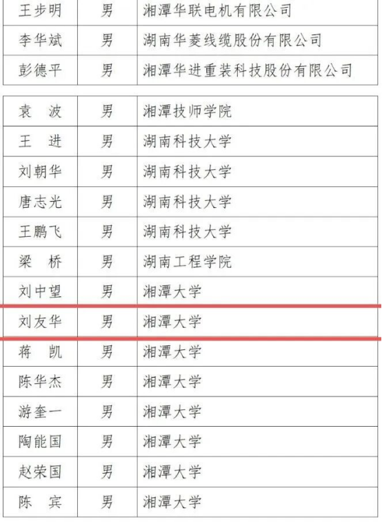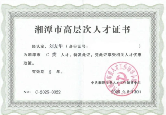 近日,中共湘潭市委人才领导小组办公室和湘潭市人力资源和社会保障局联合下发《关于认定湘潭市2024年高层次人才(总第七批)的通报》,认定一批湘潭市高层次人才。我部刘友华教授被认定为湘潭市C类(省级领军)人才。