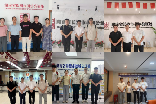 近日,由我院学部李仕春部长与段明副教授指导的公证调解调研团,先后走访了长沙市长沙公证处、麓山公证处、华湘公证处、星城公证处,株洲市国信公证处,湘潭市湖湘公证处及常德市德城公证处等七家公证机构,围绕公证调解的发展现状开展专题调研。团队成员就公证机构发展现状、公证调解的实践探索、公证机构参与基层社会治理等议题与各公证处进行了深入交流。