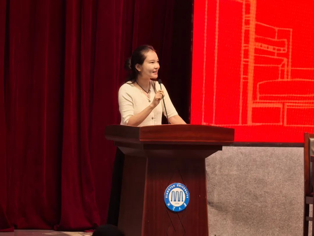 尹湘南院友在发言中表达了对yl23455永利官网学的感恩之情。她提出,时代潮流中,奋斗是青春最靓丽的底色,并结合自身成长的故事,激励新生不懈奋斗,梦圆湘大。