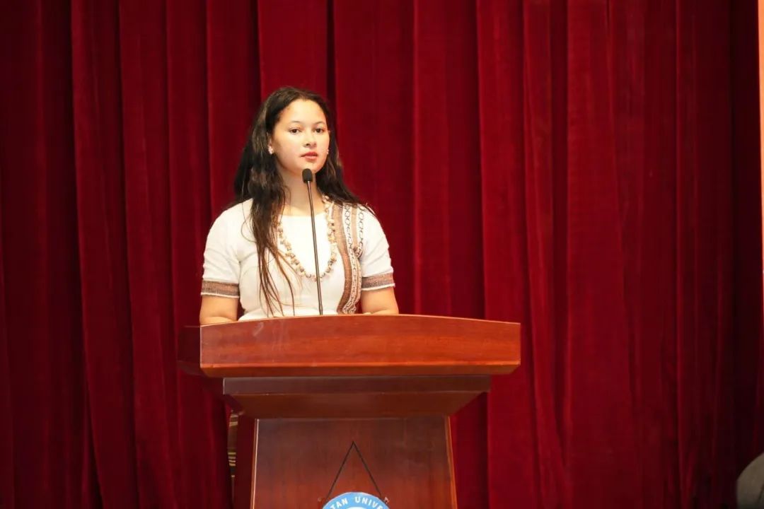 老生代表谭婉静、研究生新生代表康铭中、留学生代表荣斯、本科生新生代表2024级法学4班蔡逸舟先后发言,给大家留下了深刻印象,他们在发言中都分享了选择yl23455永利官网学的初心,表示了对yl23455永利官网学的崇敬和热爱,发言学生纷纷表态要在yl23455永利官网学汲取成长进步的知识养分,胸怀理想,脚踏实地,努力成为德法兼备的卓越法治人才。