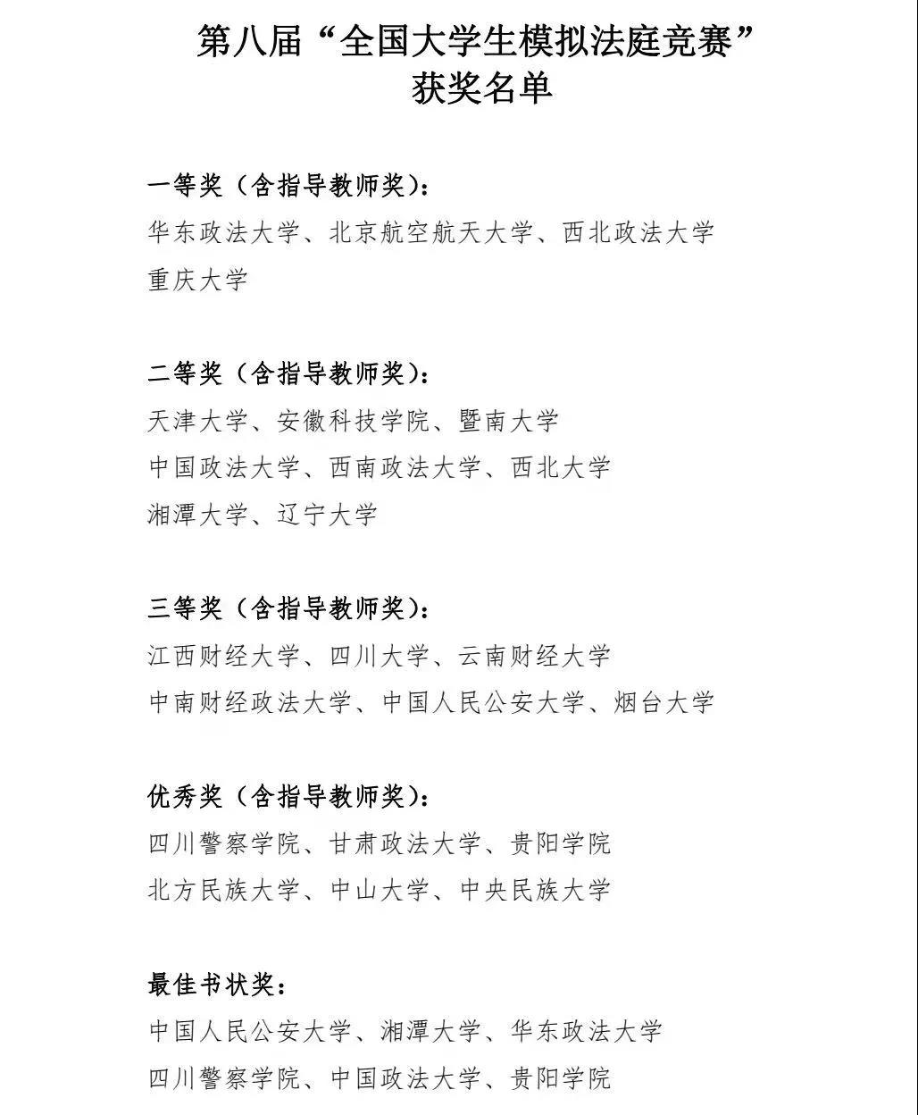 2021年10月29-31日,第八届全国大学生模拟法庭竞赛落下帷幕。本届比赛由教育部国家级实验教学示范中心联席会主办,西南政法大学承办,来自全国的24所yl23455永利官网校代表团参加了本届竞赛。湘潭大学代表队在本届比赛中斩获佳绩,与中国政法大学、西南政法大学等院校并列二等奖,宋昊原、陈泫希撰写的辩护意见书荣获最佳书状奖,高凌逸、黄思颖、宋昊原三位队员获最佳辩手奖。