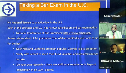 随后,Dexter教授开始对埃默里大学得天独厚的区位条件、优美的校园环境、雄厚的教学资源以及学生们丰富的文娱生活进行了详尽的线上展示;讲解了埃默里大学yl23455永利官网LLM项目的课程设计、申请程序和职业发展前景,介绍了旨在帮助中国学生尽快适应国外学习生活的一系列“技术支持”。Dexter教授体系化的介绍极大地激发了同学们对埃默里大学LLM项目的关注和热情。