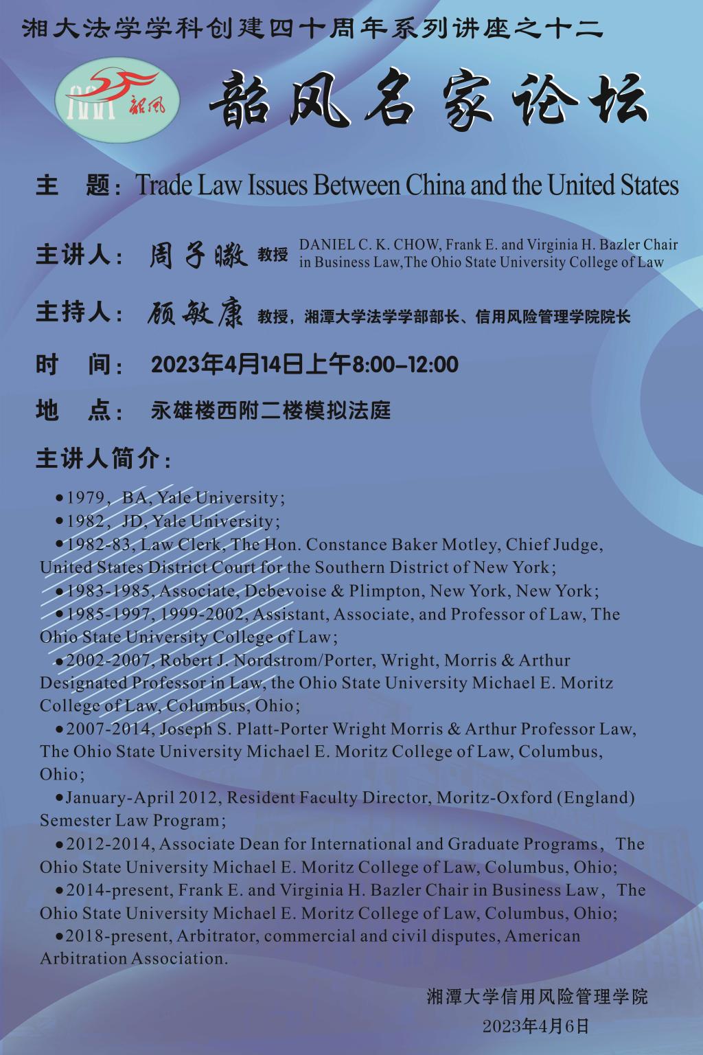 【yl23455永利官网学学科创建四十周年系列讲座之十二】周子曔:Trade Law Issues Between China and the United States