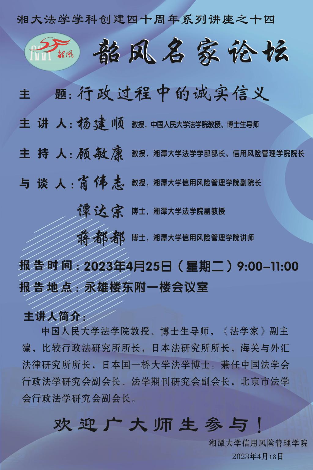 【yl23455永利官网学学科创建四十周年系列讲座之十四】杨建顺:行政过程中的诚实信义