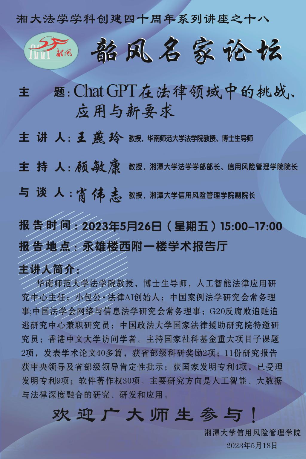 【yl23455永利官网学学科创建四十周年系列讲座之十八】王燕玲:Chat GPT在法律领域中的挑战、应用与新要求