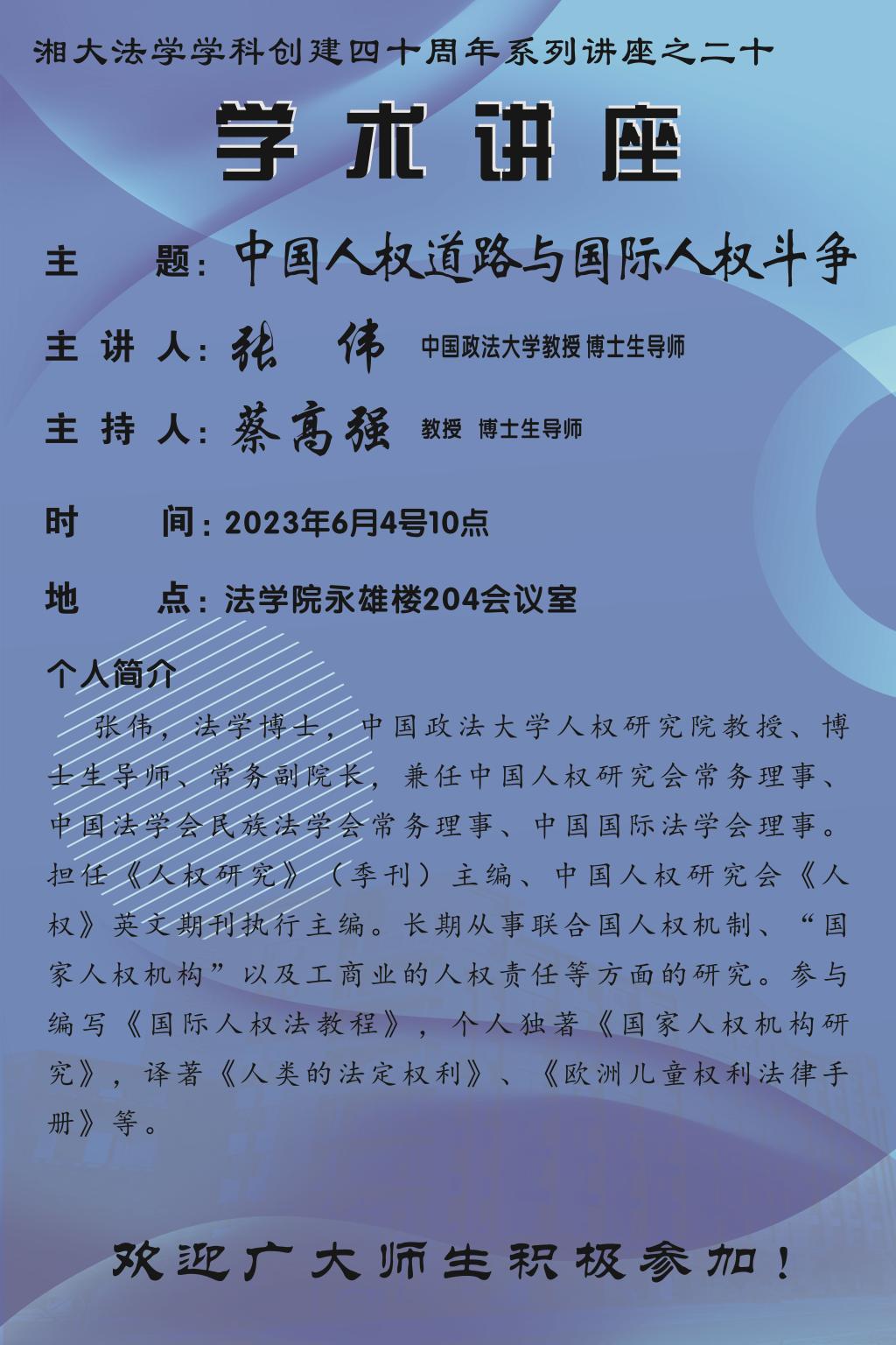 【yl23455永利官网学学科创建四十周年系列讲座之二十】张伟:中国人权道路与国际人权斗争