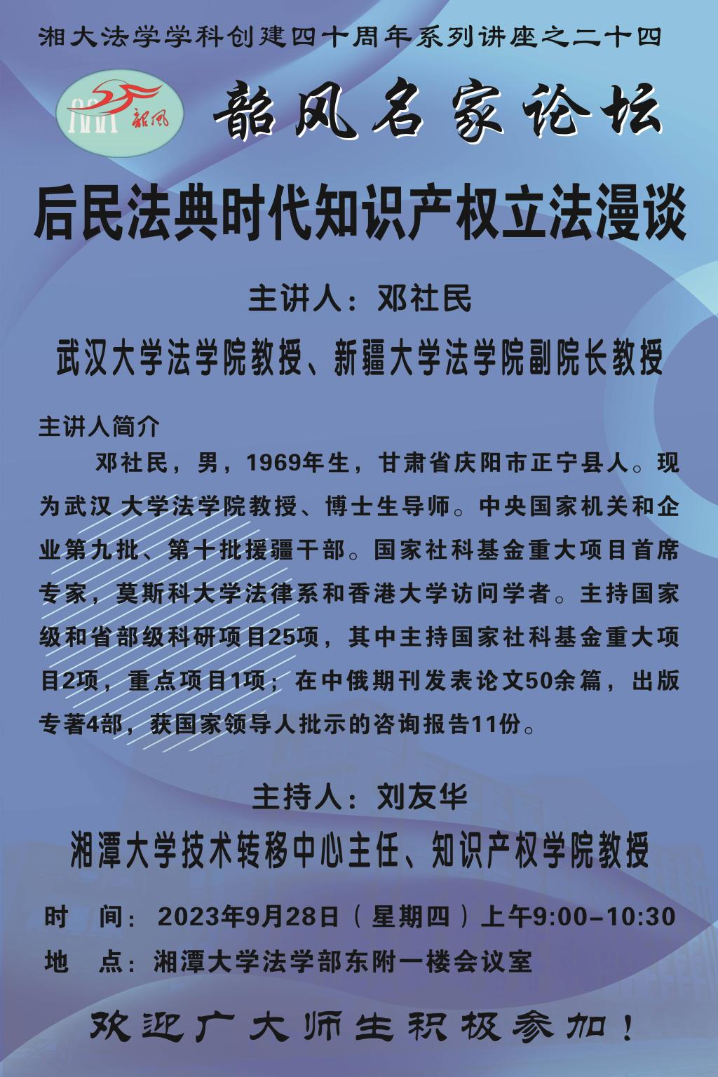 【yl23455永利官网学学科创建四十周年系列讲座之二十四】邓社民:后民法典时代知识产权立法漫谈