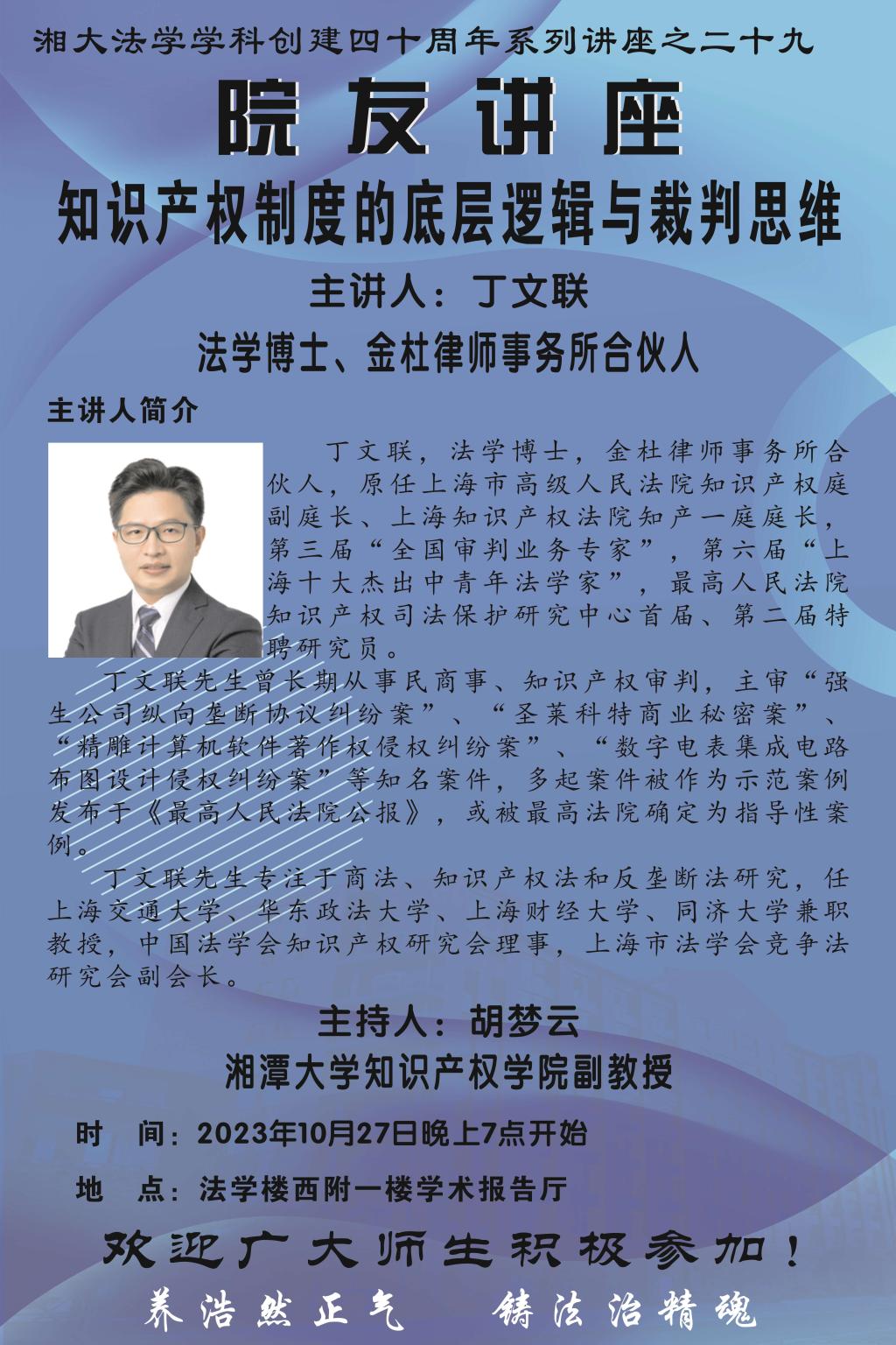 【yl23455永利官网学学科创建四十周年系列讲座之二十九】丁文联:知识产权制度的底层逻辑与裁判思维
