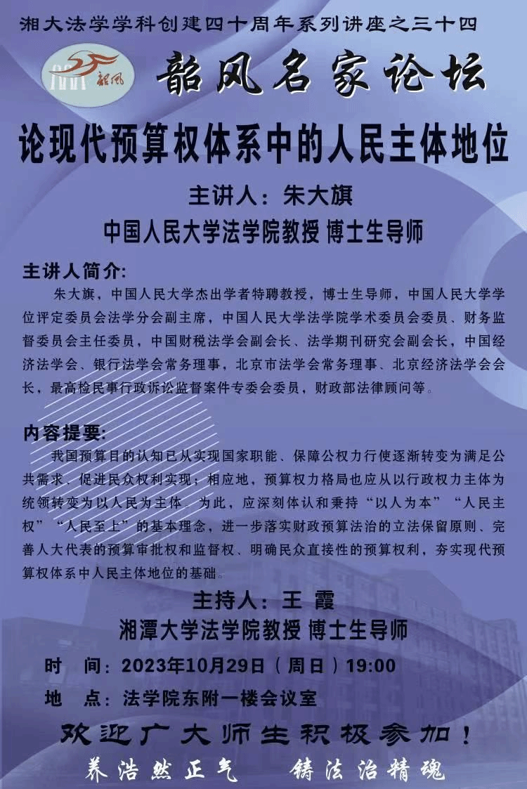 【yl23455永利官网学学科创建四十周年系列讲座之三十四】朱大旗:论现代预算权体系中的人民主体地位