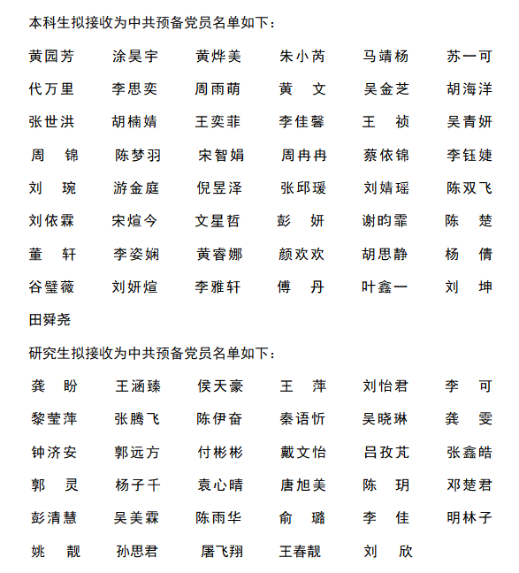 根据《中国共产党章程》和《中国共产党发展党员工作细则》,在充分听取党员、群众意见基础上,经党支部的培养教育和考察,支部委员会审查,学部党委预审,2025年上半年拟发展黄园芳等84名同志为中共预备党员,现予以公示。