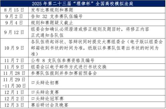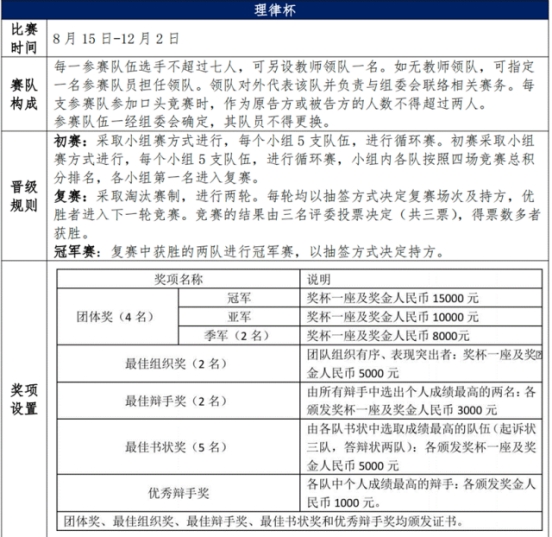 包括线上书状资格赛和线下口头辩论赛,线上书状赛通过后方进入线下口头辩论赛,详见下方表格。