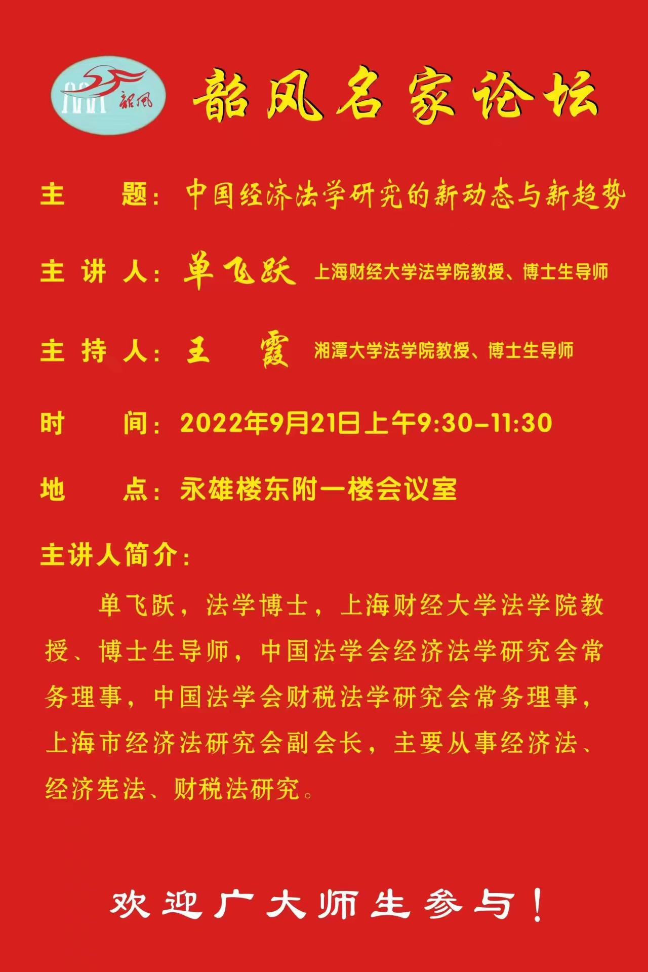 【韶风名家论坛】单飞跃:中国经济法学研究的新动态与新趋势