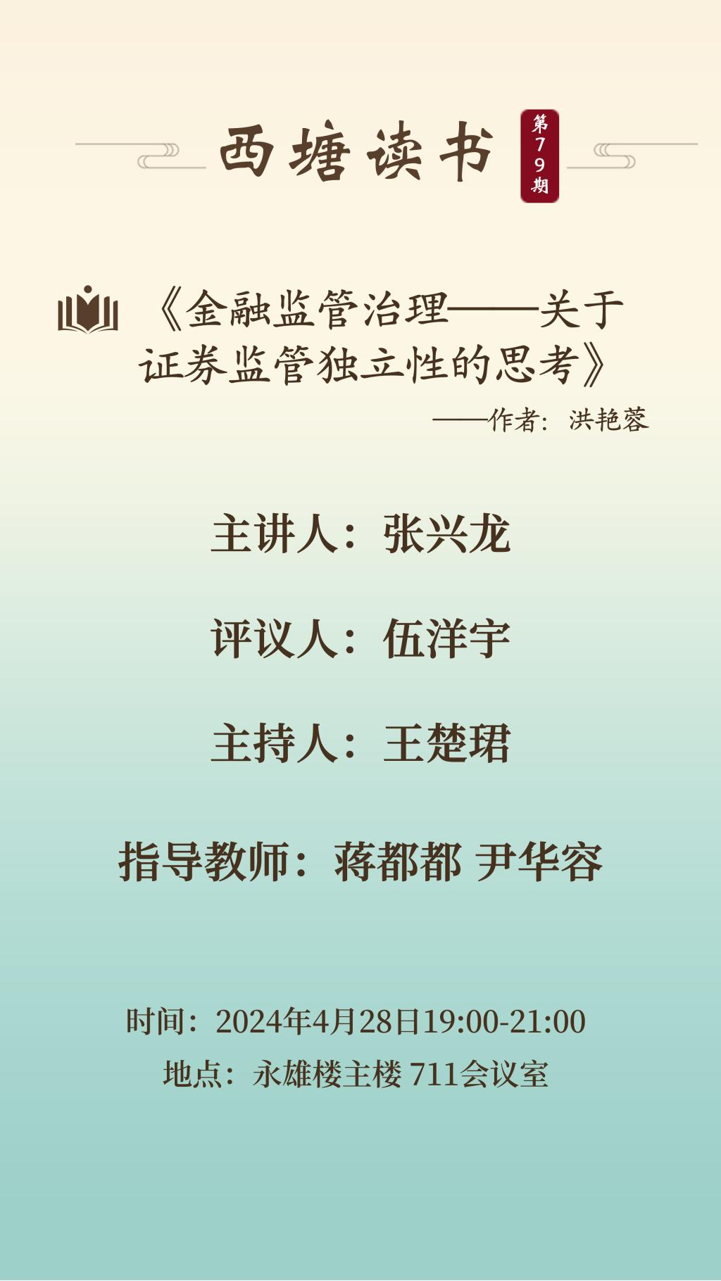 【西塘读书】第79期:张兴龙汇报:《金融监管治理--关于证券监管独立性的思考》,——作者:洪艳蓉