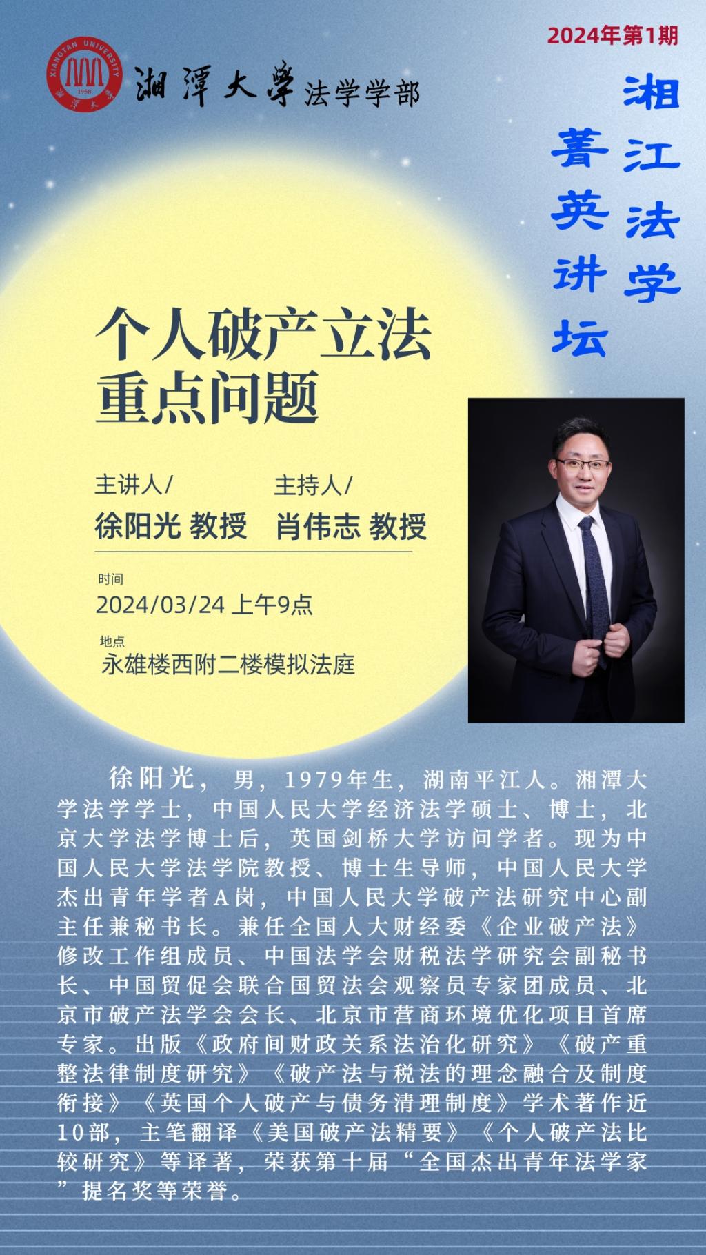 【湘江法学菁英讲坛】徐阳光:个人破产立法重点问题