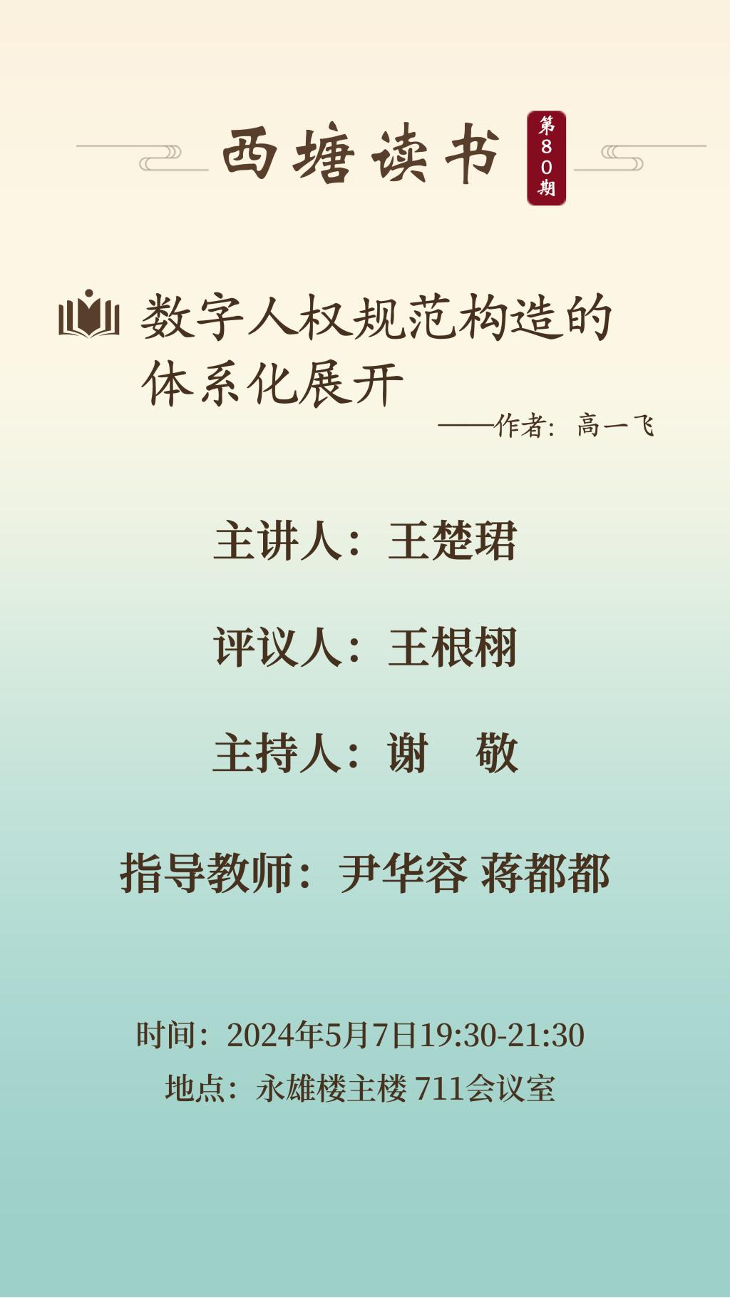 【西塘读书】第80期:张兴龙汇报:《数字人权规范构造的体系化展开》,——作者:高一飞