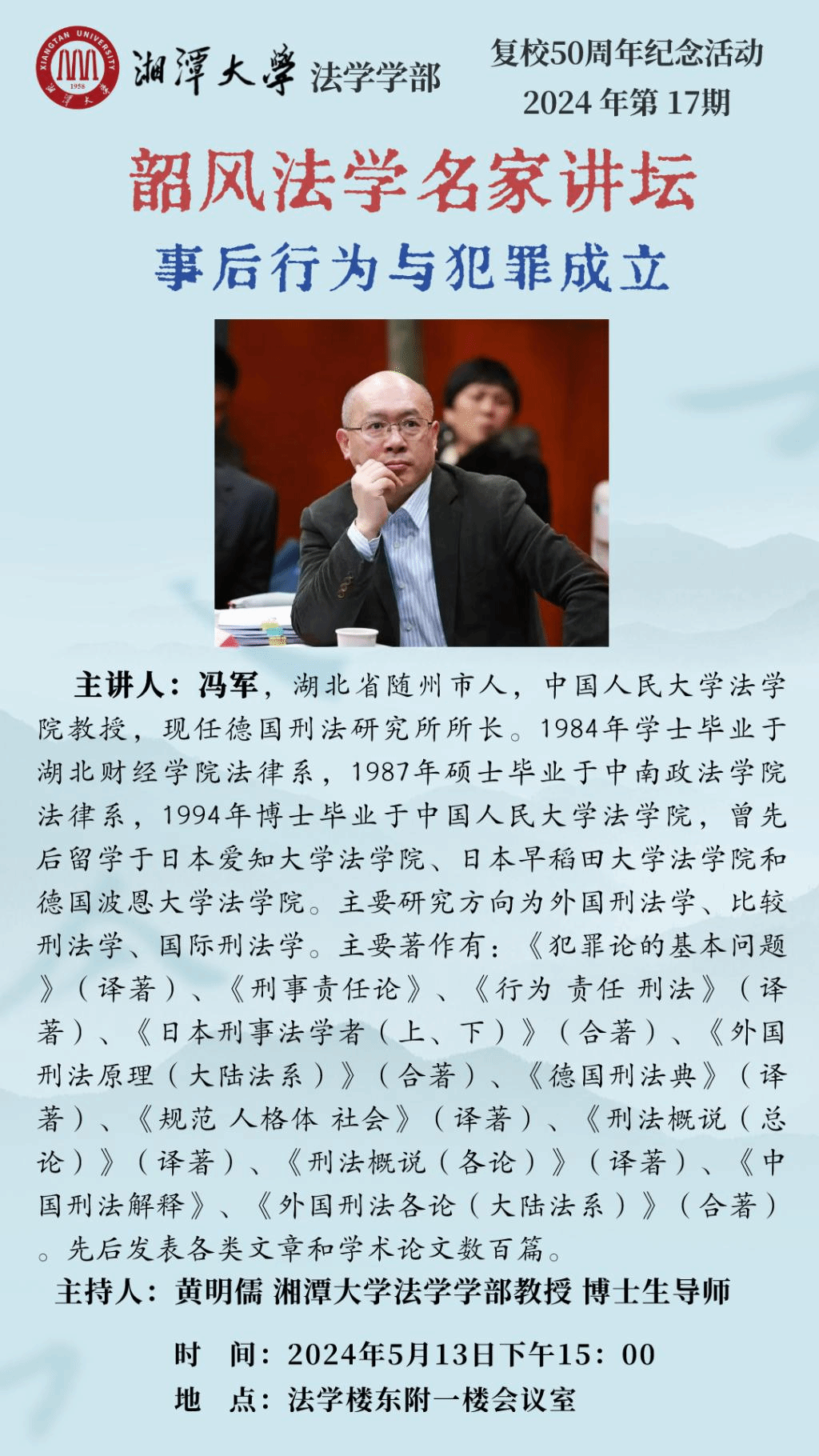 【韶风我院名家讲坛】冯军:事后行为与犯罪成立