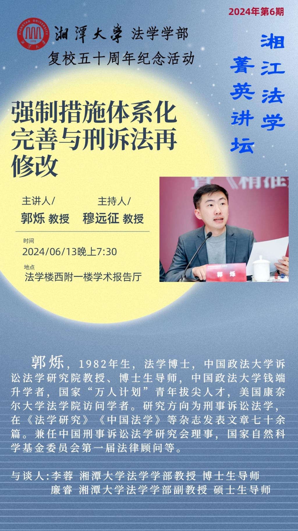 【湘江法学菁英讲坛】郭烁:强制措施体系化完善与刑诉法再修改