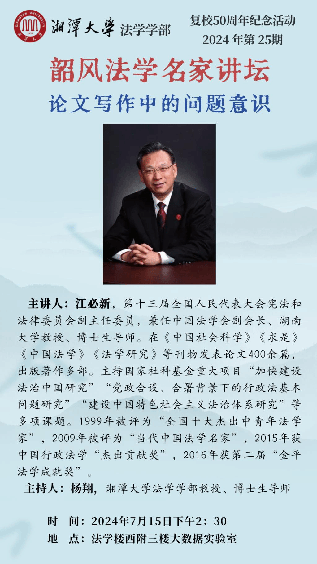 【韶风我院名家讲坛】江必新:论文写作中的问题意识