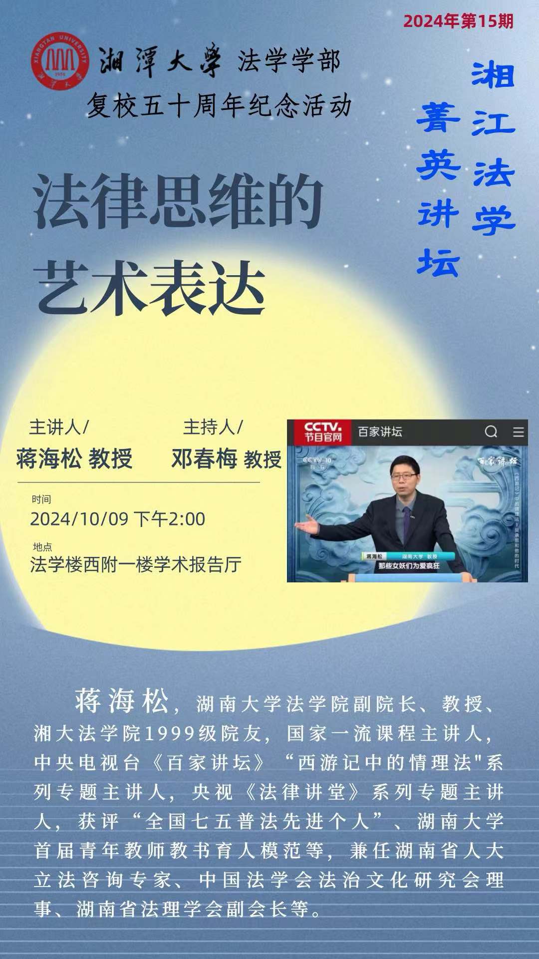 【湘江法学菁英讲坛】蒋海松:法律思维的艺术表达