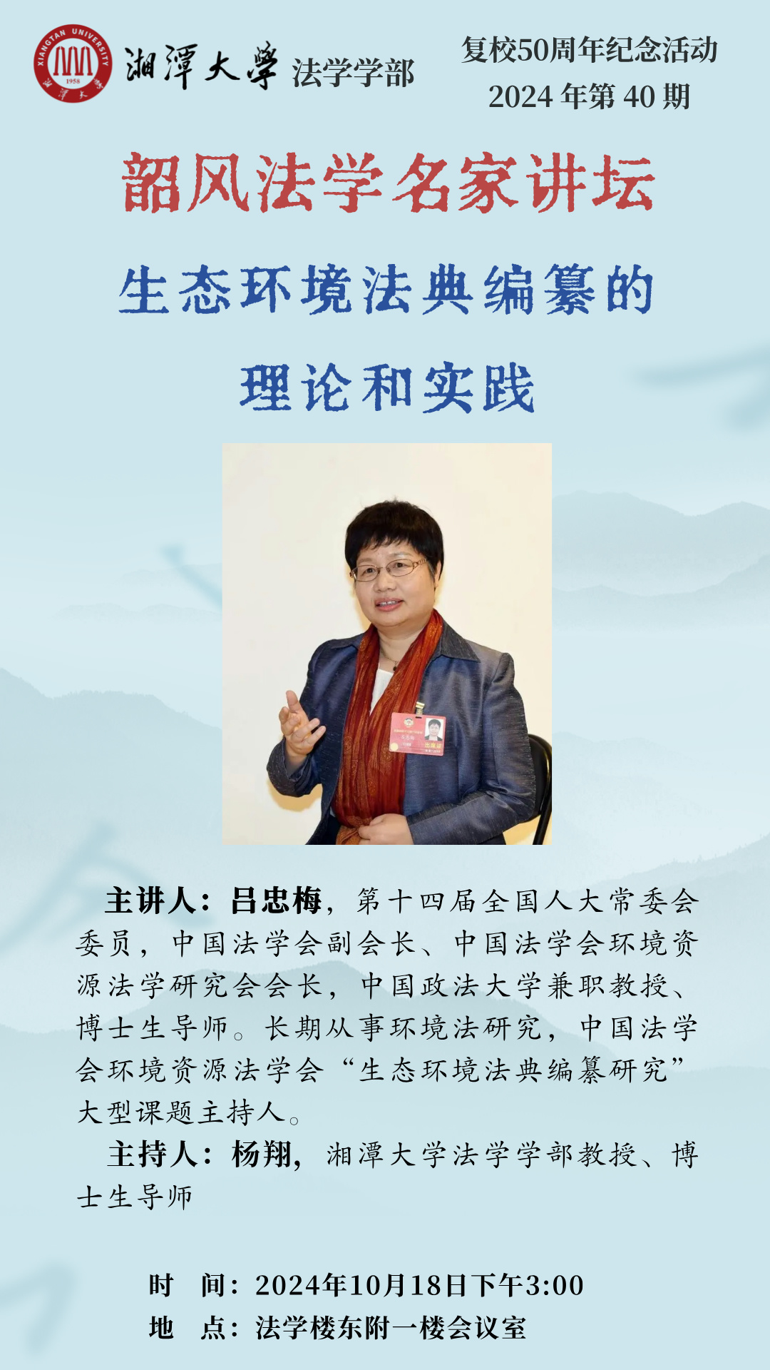 【韶风我院名家讲坛】吕忠梅:生态环境法典编纂的理论和实践